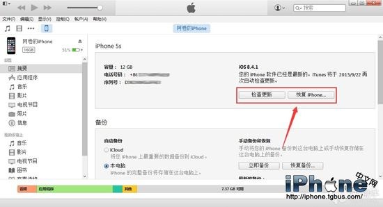 (1)、通過iTunes 恢復固件會導致清空iOS設備上所有的資料,建議先備份好重要資料。