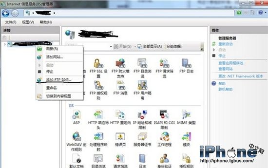 3、點擊左邊那一欄,右鍵-添加FTP站點。FTP 站點名稱可以隨便起,物理路徑則選擇你想要在iPhone/iPad上訪問的磁盤或文件夾。
