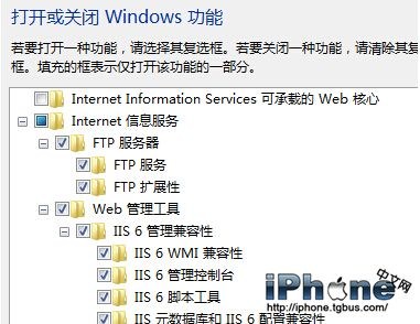 1、開始-控制面板-程序-打開或關閉Windows功能,如果是控制面板經典視圖,則直接點擊程序和功能-打開或關閉 Windows功能,打開Internet信息服務中的FTP服務器和Web管理工具(以及以下所有的子選項,見圖)。