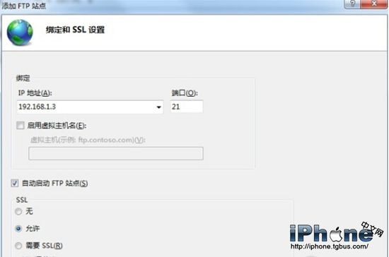4、點擊下一步。輸入你的IP地址,端口默認21,SSL選擇允許即可。