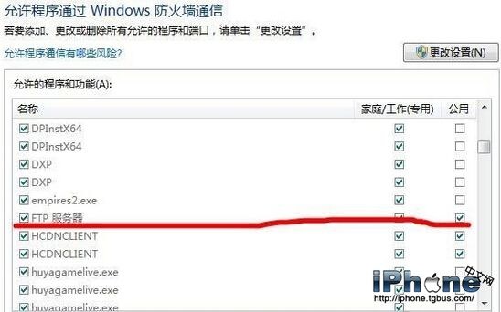 7、設置防火牆:開始-所有程序-管理工具-高級安全Windows防火牆。左側允許程序或功能通過Windows防火牆,在裡面找到FTP服務器,把三個勾都勾上。