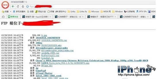 我們可以用別的電腦、iPhone/iPad或者設置FTP這台電腦訪問ftp://+IP地址來看看效果,正常情況可以正常顯示。