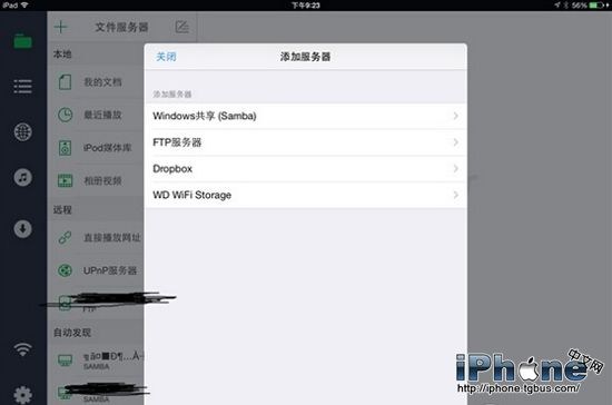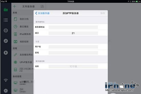 9、在iPhone/iPad上下載免費版OPlayer,點擊左上角加號,然後選擇 FTP 服務器。
