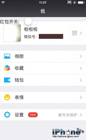 安裝好微信搶紅包插件之後,你可以在微信中“我”的界面看到【紅包開關】按鈕,可以自由選擇開啟或關閉自動搶紅包功能,目前僅支持前台聊天界面自動搶紅包,當聊天界面中有人發紅包的時候會自動秒搶,不用人工操作。而QQ搶紅包插件安裝之後則沒有相關按鈕,同樣支持自動搶紅包,目前暫不支持口令紅包。