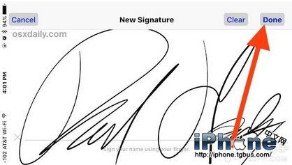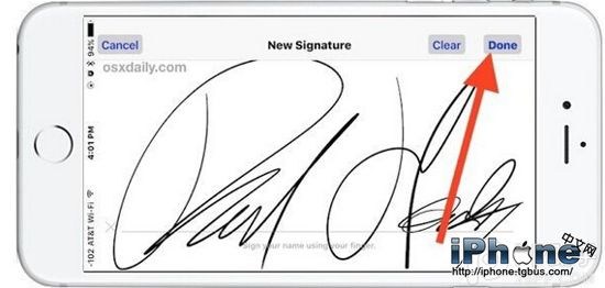 3.然後就用你的手指在屏幕上寫下你的大名吧,接著點擊“完成”。