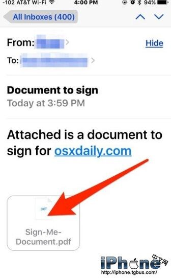 iPhone目前已經成為一些人的生產力工具,如果有人給你的iPhone發去了含有合同、協議等文件的郵件,急需你簽名核實,那麼通過iPhone該如何實現呢?
