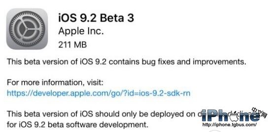 蘋果於11月11日凌晨正式推送了iOS9.2 Beta3的開發者測試版和公測版,很多用戶都想在第一時間升級,小編下面就給大家帶來iOS9.2 Beta3固件下載地址大全。