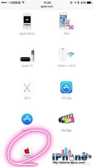 (2)下拉列表選擇更多產品,點擊Apple Care