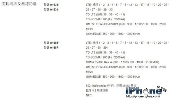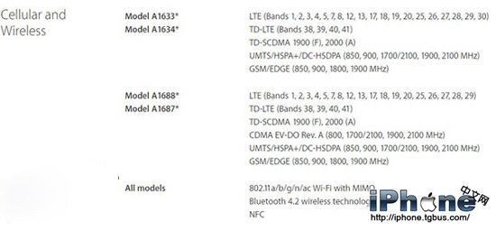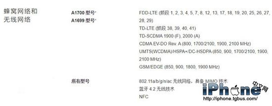 1、中國官網iPhone 6s及iPhone 6s Plus蜂窩網絡和無線網絡支持情況