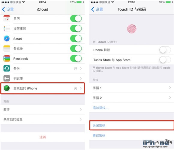 2. 越獄前務必在設備”設置”— ”TouchID與密碼”— ”關閉密碼”