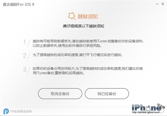 4. 請仔細閱讀【越獄須知】後,點擊【我已經備份】進入下一步