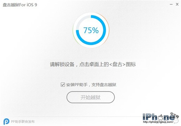 3. 點擊PP越獄工具【開始越獄】按鈕