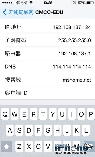 這裡我們會看到各種參數,修改其中的DNS為“114.114.114.114”
