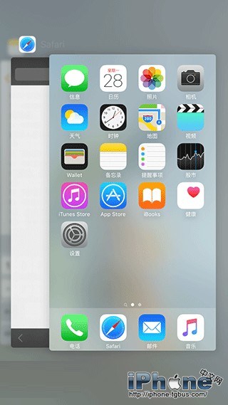 在iOS9中,當你開啟“無痕浏覽”模式使用Safari浏覽器時,雙擊Home鍵打開多任務管理頁面,網頁中的內容會被自動隱藏。