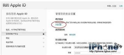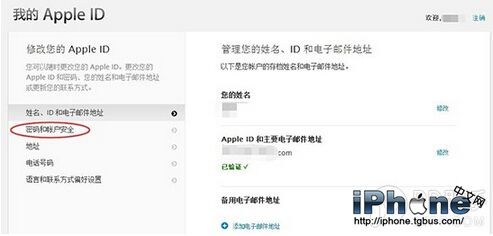 3. 點擊左側的“密碼和賬戶安全”選項,並回答此前設置的安全提示問題,開始兩步驗證的設置。