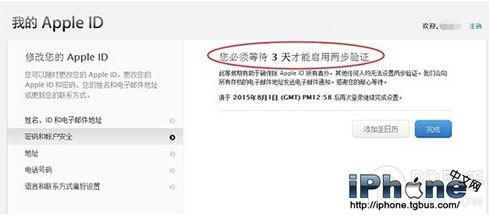 4. 進入兩步驗證之後,你將會遇到等待 3 天之後才能開啟兩步驗證的情況。(以下截圖由網友mrtyzq提供)