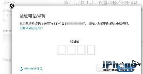 5. 添加手機號碼之後,在彈出的驗證框中輸入收到的短信驗證碼。