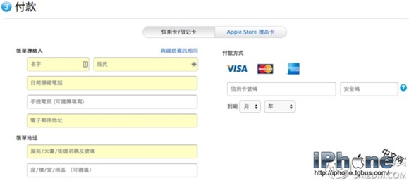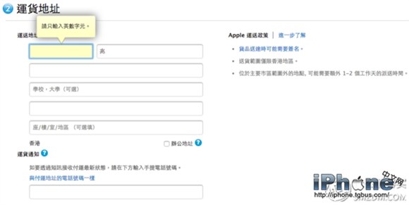 ▼ 需要提醒的是,蘋果香港官網不支持簡體中文,所以在填寫姓名、配送地址(運貨地址)和信用卡賬單地址時,請使用繁體中文和英文。