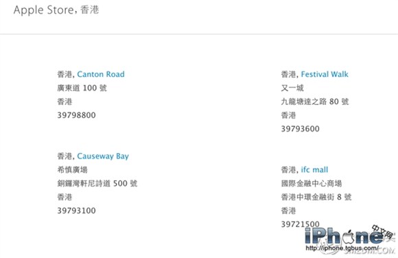 ▼ 蘋果香港直營店(Apple Store)詳細地址與聯系方式。