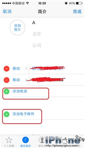 進入編輯選項後找到圖片中紅圈所示添加你想阻止的電話號碼,也就是說你創建一個聯系人名稱就行了,你把所有不想接的電話和電子郵件都添加到這一個聯系人裡,記得點擊右上角的完成並完成所有步驟。