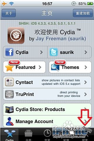 在已越獄的iphone手機的主屏幕找到Cydia的圖標,點擊進入