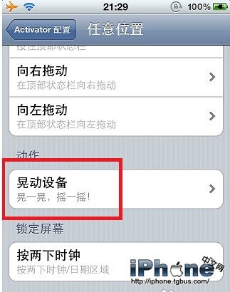 然後就是動作設置了,這個步驟需要設定的就是Activator要對你的什麼動作做出反應。我們就根據個人的喜好情況設定吧,這裡以晃動設備的動作作為事件的觸發動作