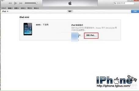 2、iTunes會自動檢測到一台等待恢復的設備,點擊確定: