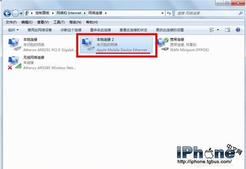 點擊進入更改適配器設置後,如圖,會看見“本地連接 2”,證明iphone成功連接電腦