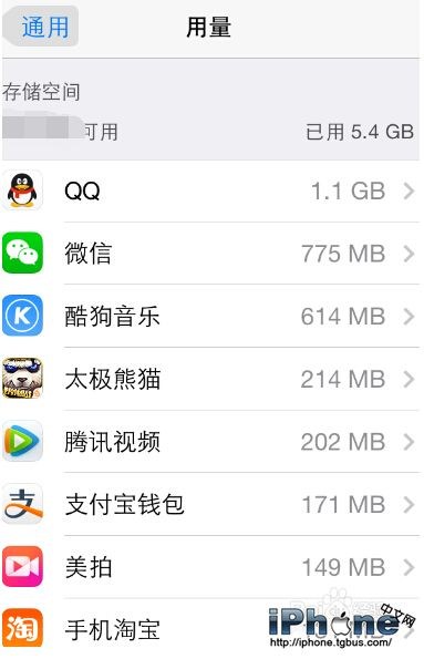 接下來,查看一下各個應用占據了多少空間。用戶可以打開設置、一般,然後選擇使用、存儲空間管理來查看。用戶可以很清楚地看到哪個應用占據了很大的空間,從而決定手動清理緩存或是卸載再安裝。
