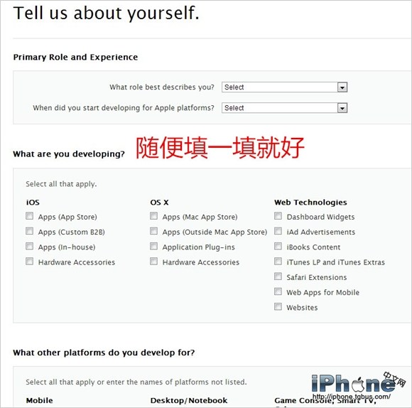 6、跳轉到個人開發者信息填寫頁面後,隨便填一下;