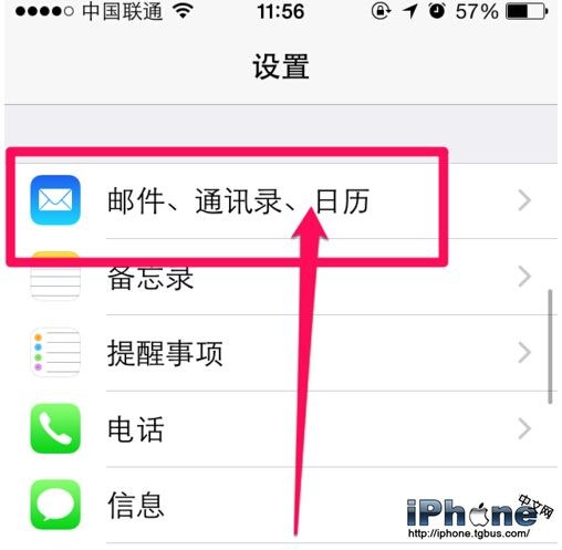 2、接著在設置選擇郵件、通訊錄、日歷這個選項。
