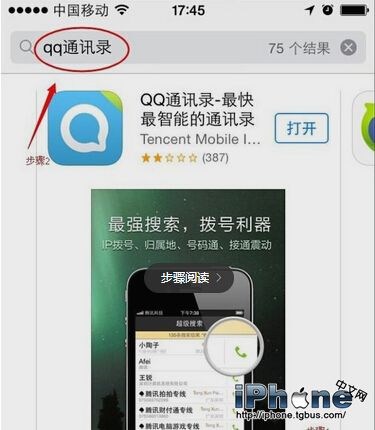 如圖,在iphone手機上自帶的App Store上搜索下載QQ通訊錄,安裝到手機上.