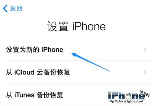 隨後可以選擇從備份中恢復(主要是針對之前也是使用過蘋果手機的用戶),一般情況下,我們選擇“設置為新的 iPhone”選項,如圖所示;