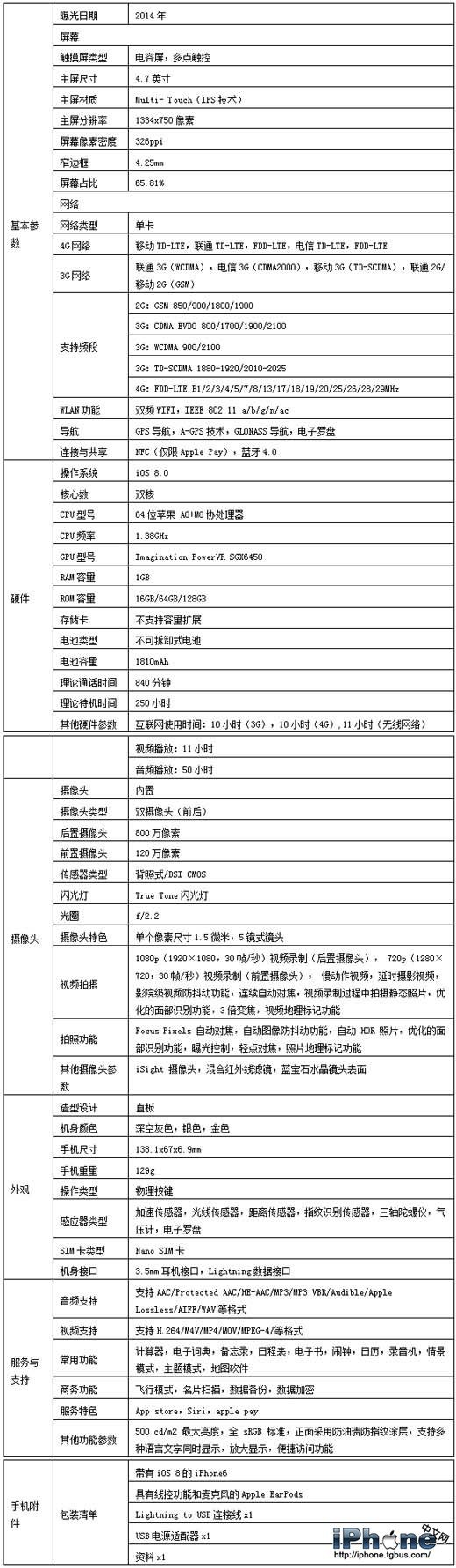 iPhone6重量和尺寸: