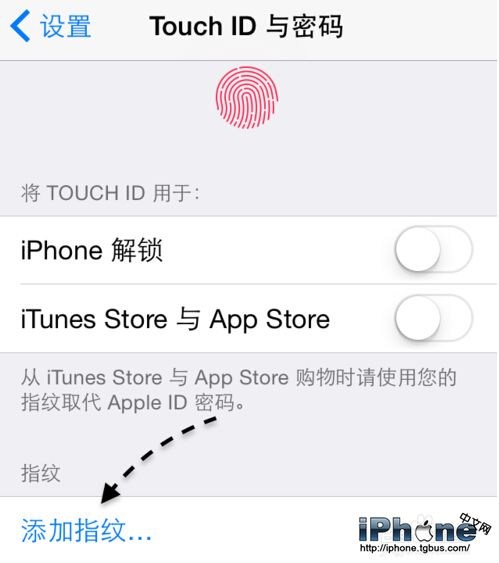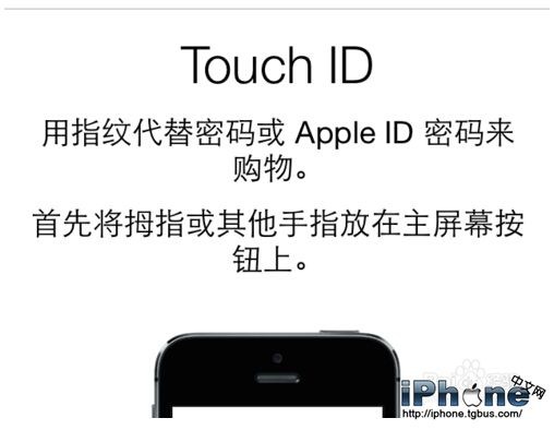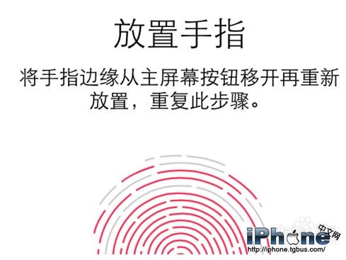 接下來就進入了 Touch ID 的指紋識別界面,把你想要添加的手指放到主屏Home按鍵上。