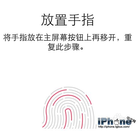 與之前一樣,重復把手指放到主屏Home 鍵上,如圖所示