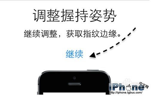 當上面的指紋記錄完成以後,接下來還會記錄一次。這次主要是識別平時用手指按 Home 鍵的姿勢,根據自己平時用手指按鍵的習慣來操作。