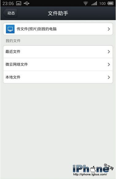 我們可以看到最近文件,微雲上的文件以及本地文件,不過我們要點擊的是“傳文件(照片)到我的電腦”。