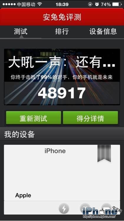 從安兔兔測試成績看,iPhone6 plus安兔兔跑分48917分,如此高的分數完全秒殺了其它一切蘋果設備跑分(iPad air,iPhone 5S以及iPad mini等),跑出這麼高的分數,相信很多人都不會感到吃驚,畢竟iPhone6 plus已經做出了自己現在水平的規格。