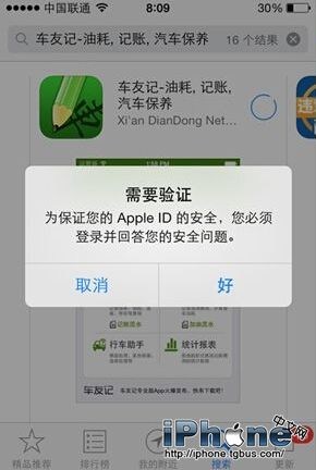 現在已經重新設置了安全提示問題,再次打開iPhone或者iPad,輸入設置好的問題答案就可以下載安裝應用了!