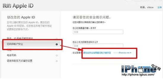 登錄後,點擊“密碼和賬戶安全”,在頁面右邊底部有個“忘記答案?請發送安全信息重設電子郵箱至 xxx@weste.net”。注意:這裡是您的設置的電子郵箱地址。