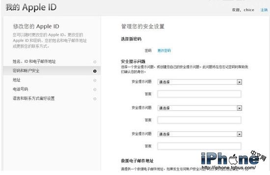 3、重新設置安全提示問題