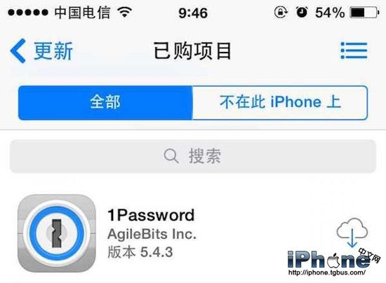 再次回到手機,進入 AppStore -更新-已購項目,剛才在電腦端的 iTunes 上購買的「1Password」就出現在列表裡面了。
