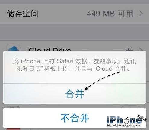 如果驗證通過以後,接下來會提示我們是否合並當前手機上與 iCloud 中的各種數據,建議點擊“合並”按鈕,如圖所示