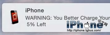 6、如果當 iPhone 的電量低於軟件設置的提醒電量時,就會以通知我們,如圖所示