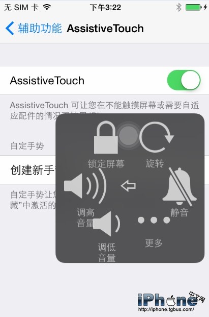 大多數用戶都很喜歡用輔助功能裡邊的AssistiveTouch,也就是那個虛擬Home鍵小圓點。我們在虛擬Home鍵裡面是直接找不到關機按鍵的,其實它就隱藏在“鎖定屏幕”這個虛擬按鍵背後。