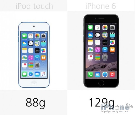 第六代iPod Touch的重量明顯要更輕點,相比較iPhone6重量要輕32%。