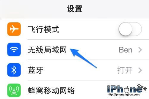 1、在設置列表中點擊“無線局域網”一欄,如圖所示