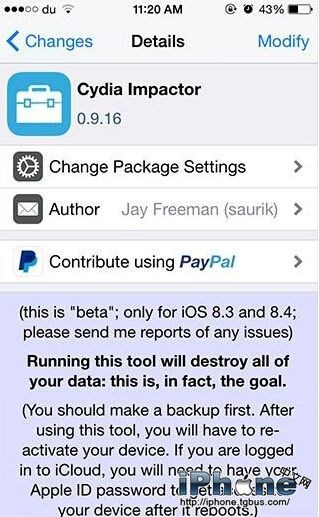 Cydia Impactor 目前還處以測試階段,支持 iOS 8.3 和 iOS 8.4 設備,不過目前並不支持 iPod touch 6。本文將通過簡單的教程為你介紹如何讓越獄設備恢復到未越獄狀態。