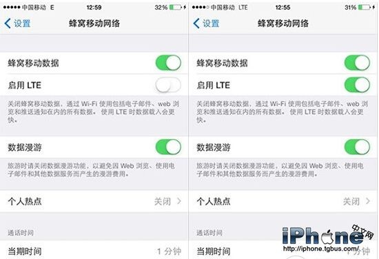 4.解鎖成功後,在蜂窩移動數據中,可以通過啟用LTE按鈕,實現2G/3G/4G網絡切換。